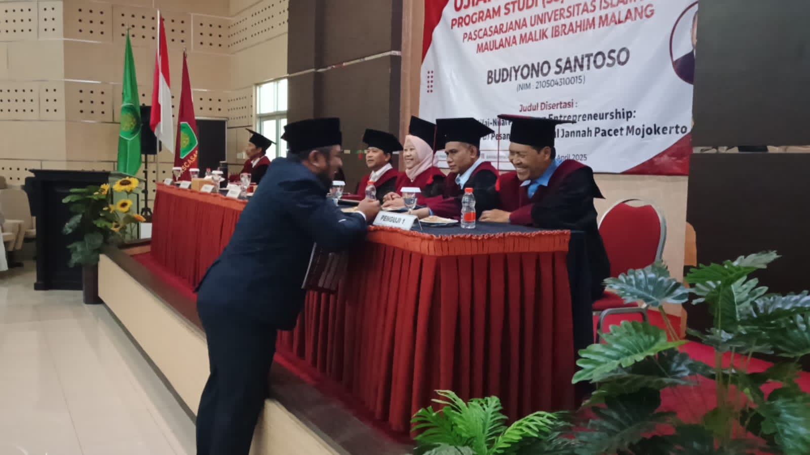 Sidang terbuka yang digelar di Kampus Pascasarjana ini dihadiri lebih dari 150 peserta dari kalangan akademisi, pengusaha, tokoh pesantren, dan organisasi kemasyarakatan Islam. Disertasinya berjudul “Nilai-Nilai Pesantren Entrepreneurship” dinilai sebagai karya ilmiah yang menawarkan terobosan konseptual dan metodologis.