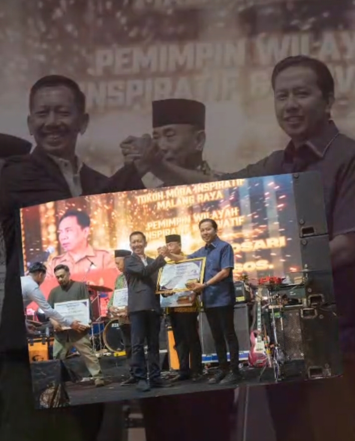 Penghargaan didapatkannya saat memenuhi undangan pelantikan pengurus SMSI Malang Raya, bertempat di out door halaman depan Balai Kota, Among Tani, Kota Batu, Minggu, (11/05/2025).