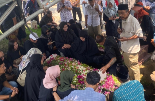 Rombongan tiba sekitar pukul 10.30 WIB dan langsung melangsungkan prosesi pemakaman dan pembacaan doa tahlil bersama.