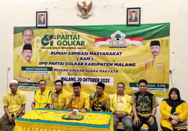 MALANG | TAGAR INDONESIA.COM – Memeriahkan hari jadi Partai Golongan Karya ke- 61, Dewan Pengurus Daerah Partai Golkar Kabupaten Malang resmi meluncurkan Rumah Aspirasi Masyarakat (RAM), Senin (20/10/2025).