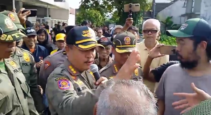 Tapi ketika petugas Satpol PP dan gabungan TNI-Polri mulai bergerak, teriakan protes warga dan dorong-dorongan pun pecah.