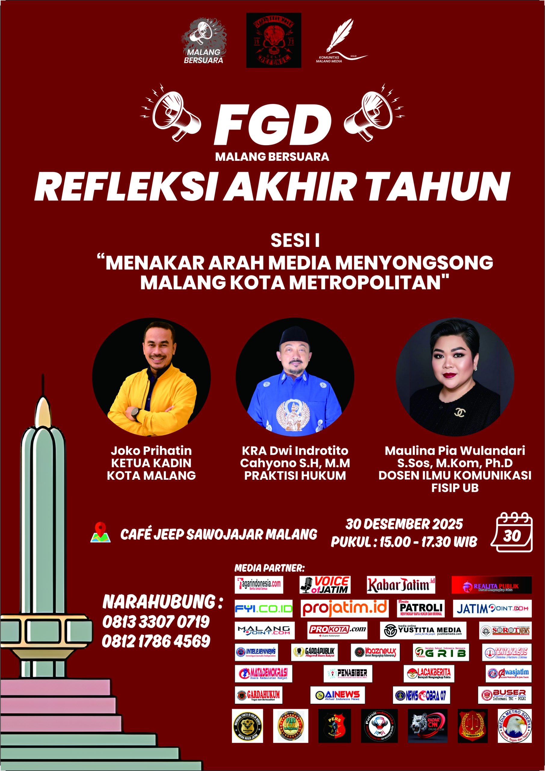 Hal itu disampaikan Sam Tito (panggilan akrab KRA Dwi Indrotito Cahyono SH, MM) saat menjadi narasumber di acara FGD Malang Bersuara dengan tema “Menakar Arah Media Menyongsong Malang Kota Metropolitan” di Cafe Jeep Sawojajar Malang Selasa (30/12/2025).