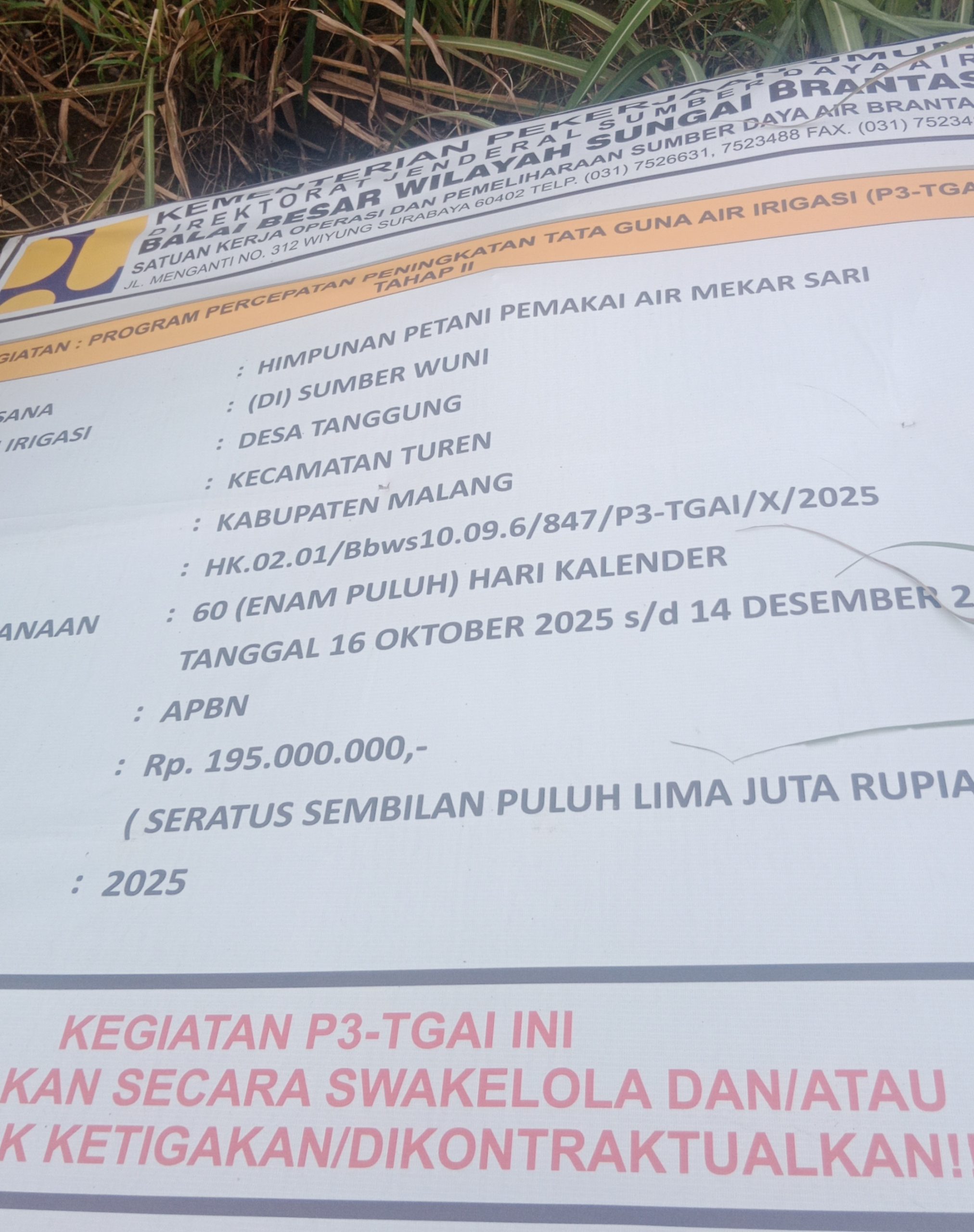 Akan tetapi hasil investigasi media ini bersama tim DPC ProJo Kabupaten Malang pada 24 Desember 2025 lalu pekerjaan baru dikerjakan sekitar 60 persen.