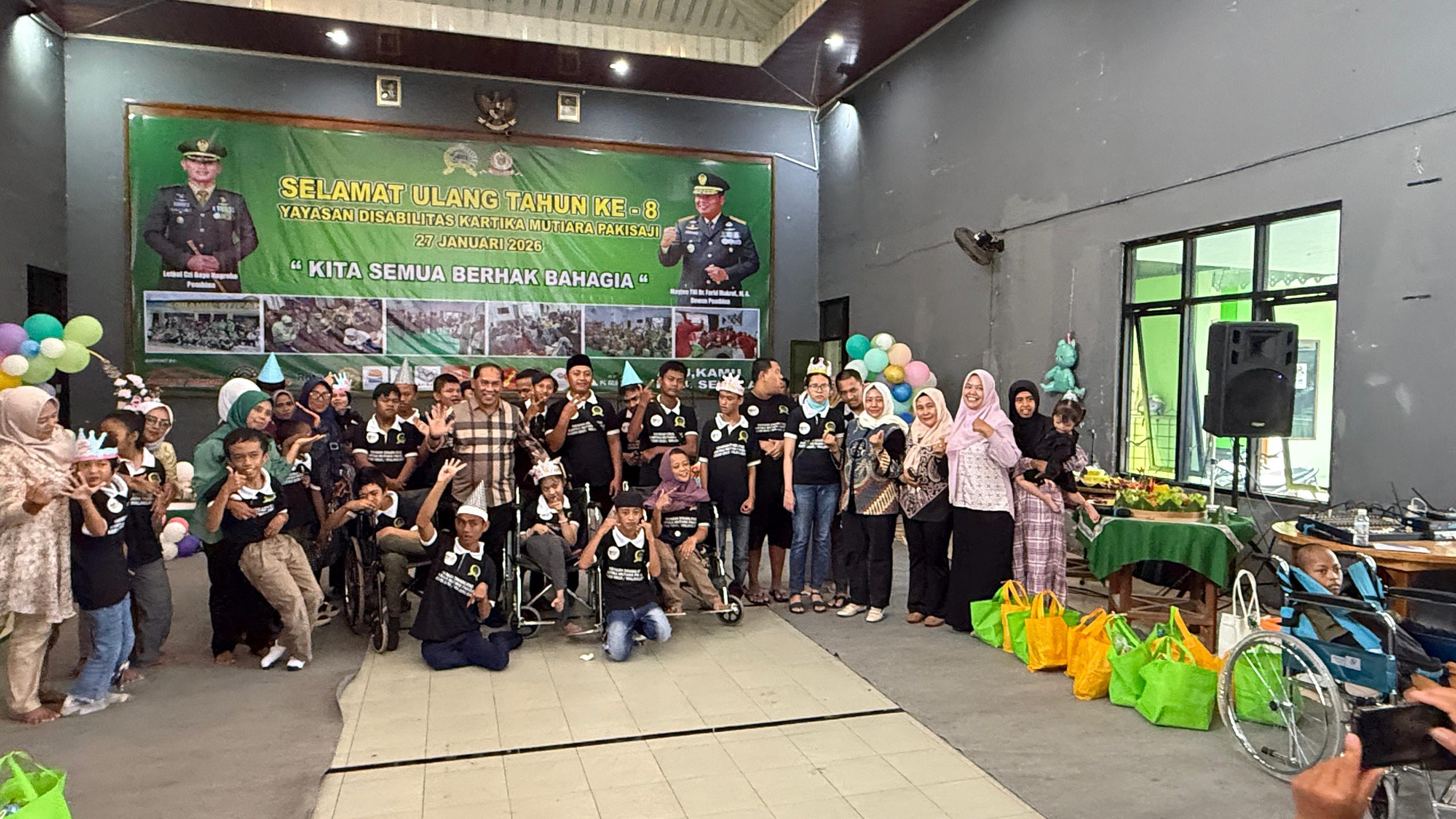 MALANG | TAGAR INDONESIA.COM – Acara HUT Ke 8 Yayasan Disabilitas Kartika Mutiara Koramil 0818/07 Pakisaji di Gedung Cinde Wilis, Jalan Raya Pakisaji No. 39B Kec. Pakisaji, Kabupaten Malang Selasa siang (27/1/2026) berlangsung meriah.