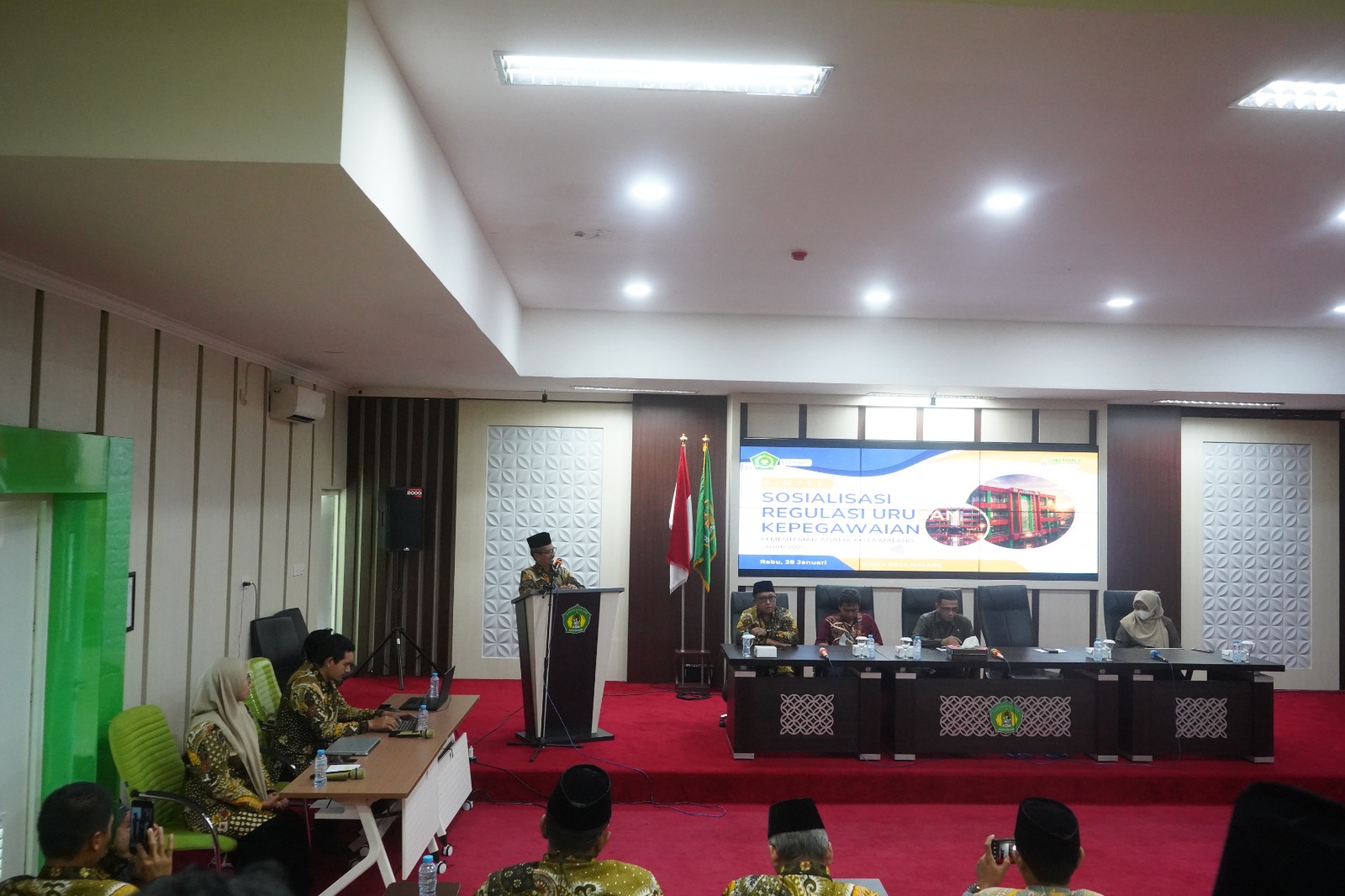 “Sosialisasi Kepegawaian ini menjadi sarana penting untuk menyamakan persepsi, meningkatkan pemahaman regulasi, serta memperkuat sinergi antar madrasah negeri se-Kota Malang dalam mewujudkan tata kelola kepegawaian yang tertib, profesional, dan berintegritas,” jelas Sugeng.