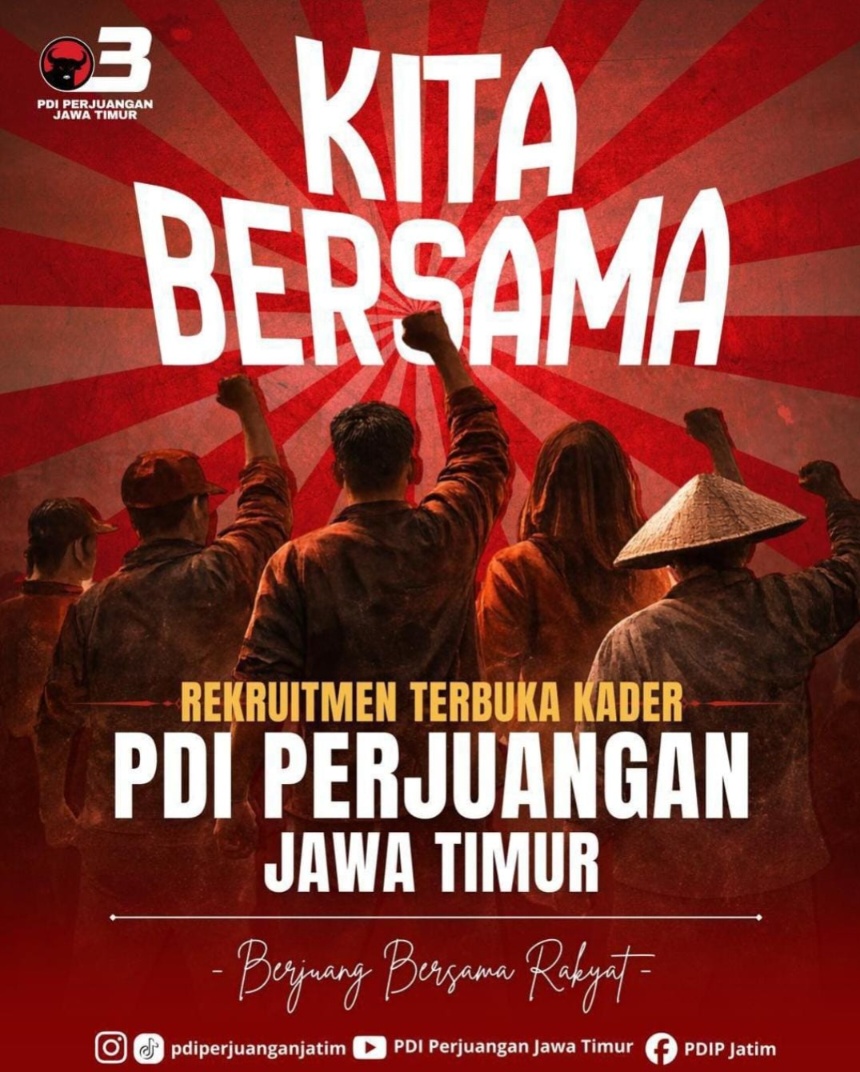 “Silahkan datang dan silahkan bergabung. Bisa secara online maupun datang ke kantor-kantor partai yang ada di 38 kabupaten/kota se-Jatim. PDI Perjuangan adalah partai terbuka, ruang belajar dan ruang pengabdian yang tepat bagi semuanya, termasuk Gen Z, yang ingin berbuat nyata untuk masyarakat,” ucap Sekretaris DPD PDIP Jatim, Deni Wicaksono.