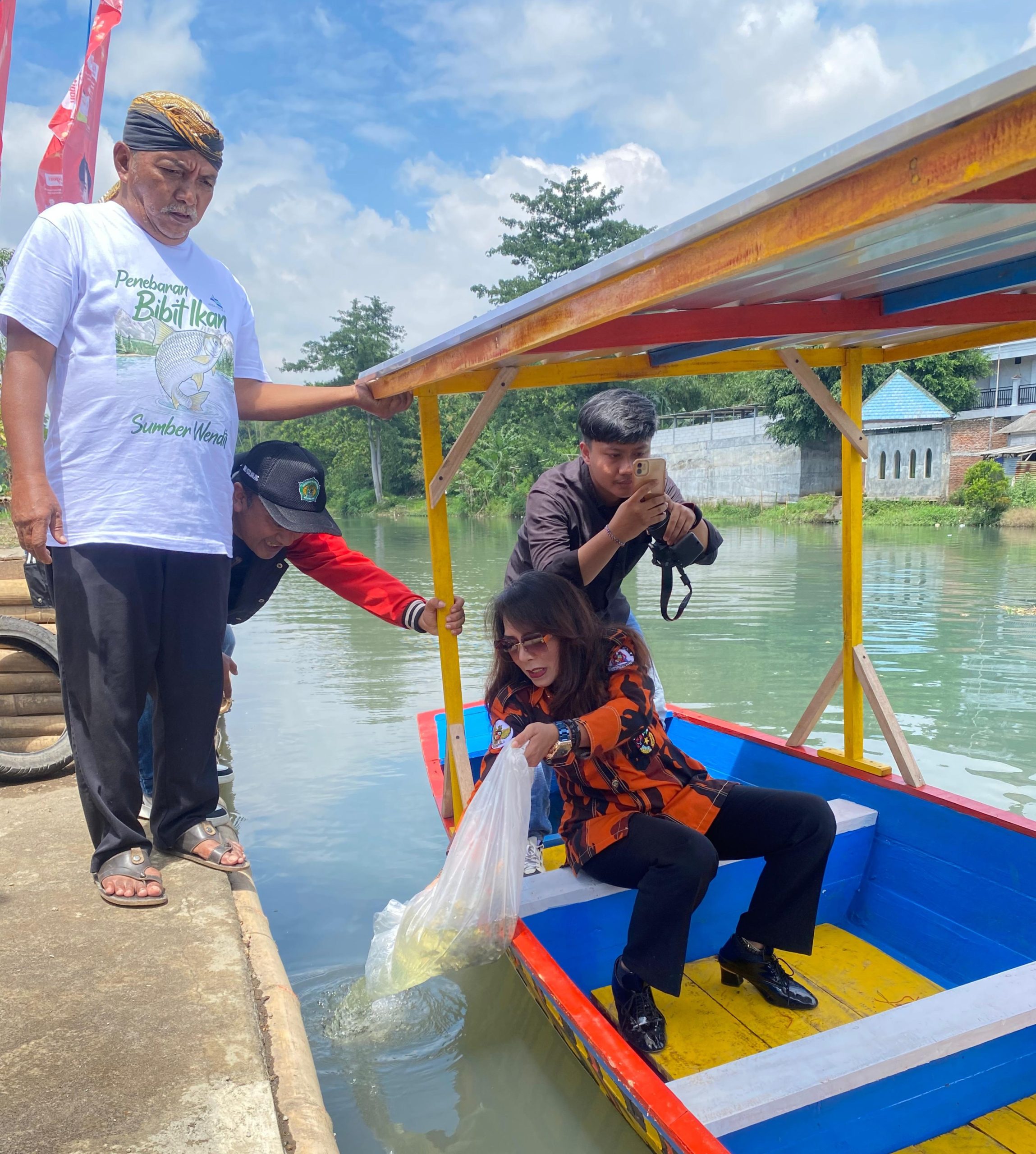 Usai penanaman pohon, Kiky bersama Kepala Desa Mangliawan M.Jai, Ketua DPC ProJo Kabupaten Malang Ahmad Ghufron, dan Ketua KHYI Malang dan Ketua GANN Malang Raya, KRA Dwi Indrotito Cahyono SH, MM melakukan tebar benih ikan Nila 3 ribu ekor di Sungai belakang Wendit.