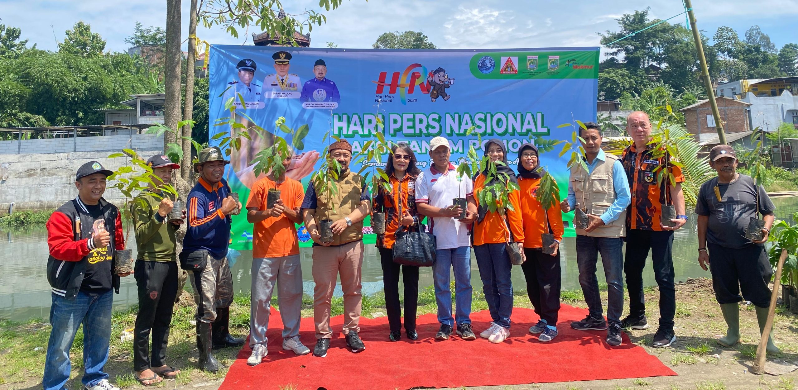 Saat menghadiri undangan perayaan HPN 2026 yang digelar komunitas media Malang, Kiky ikut serta menanam pohon buah jenis sirsak di area bantaran sungai Wendit.