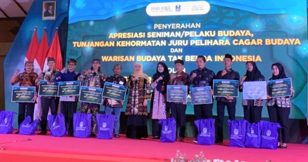 Penghargaan diberikan Gubernur Khofifah sebagai bentuk apresiasi kepada seniman atau pelaku budaya di Jawa Timur dan kabupaten/kota yang ditetapkan sebagai penerima sertifikat Warisan Budaya Tak Benda (WBTB).