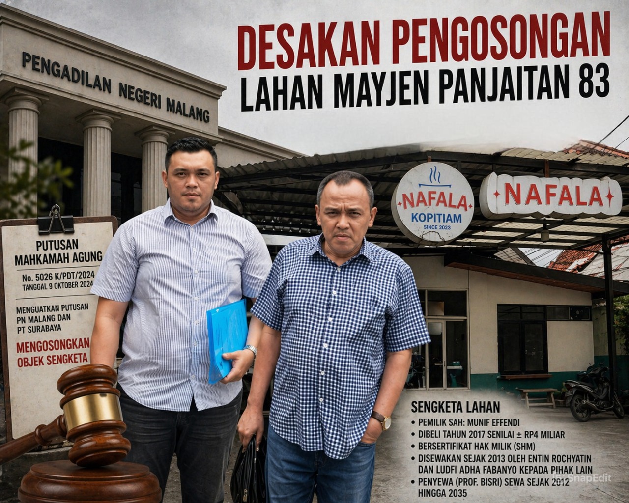 TAGARINDONESIA – Upaya eksekusi atas sengketa tanah dan bangunan di Jalan Mayjen Panjaitan 83, Kota Malang terus bergulir. Pemilik sah, Munif Effendi, mengajukan permohonan pengosongan melalui Pengadilan Negeri Malang setelah putusan berkekuatan hukum tetap dari Mahkamah Agung Republik Indonesia.